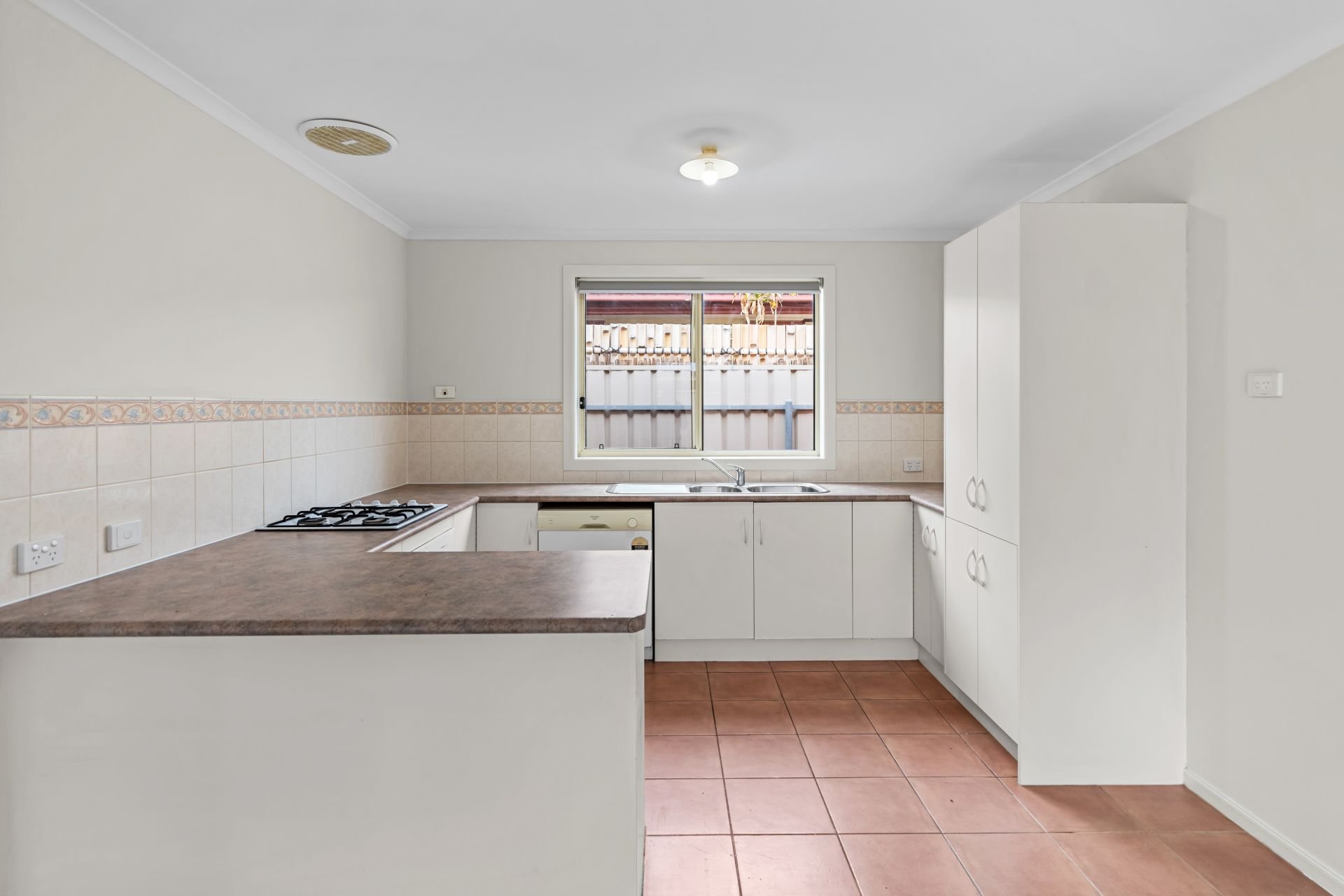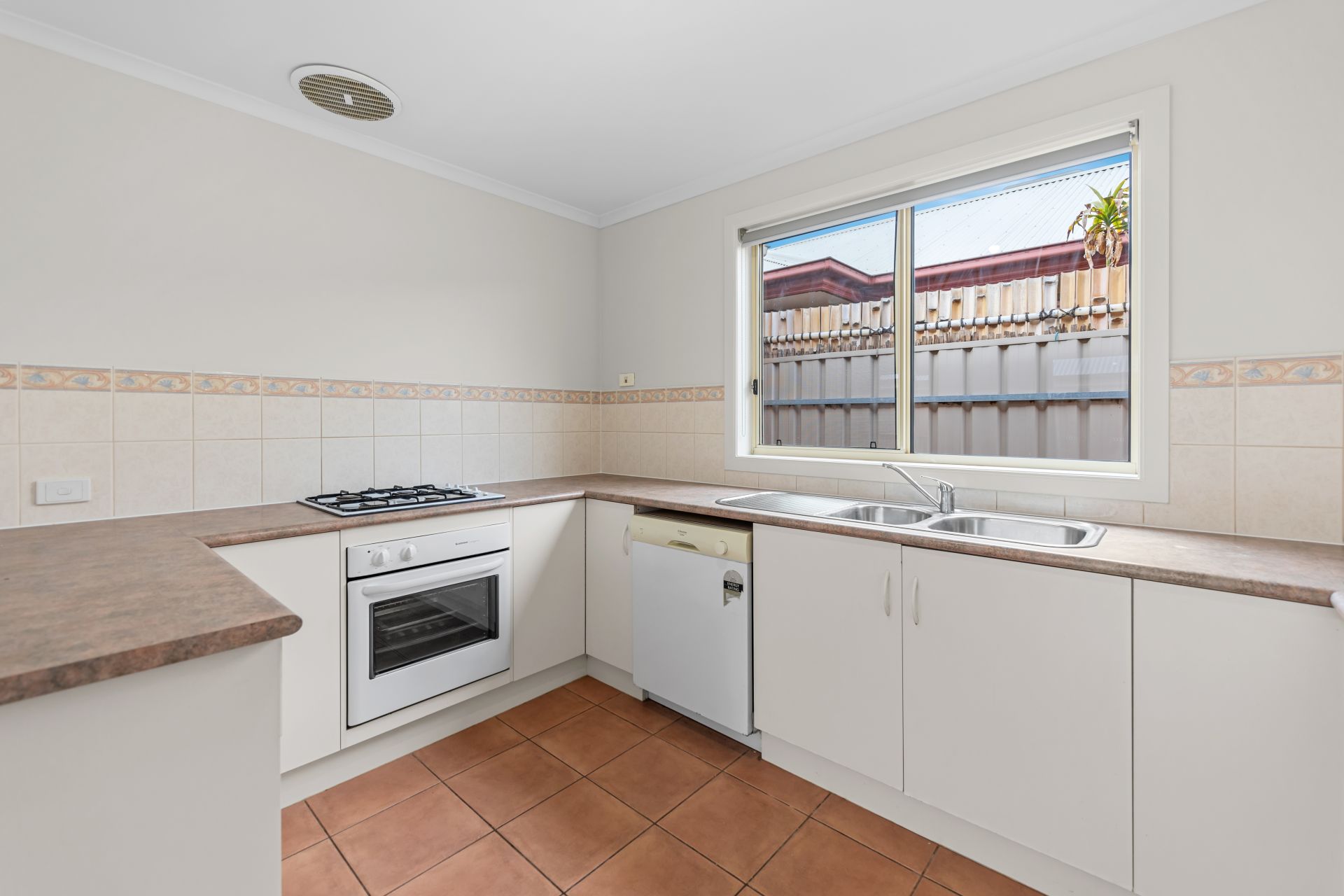 - Neutral kitchen with electric oven, gas cook top & dishwasher